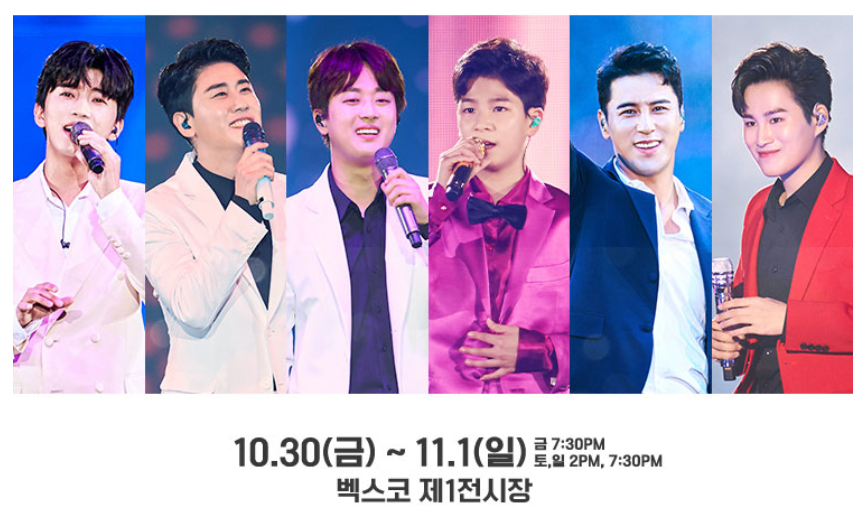 이번 미스터트롯 콘서트는 '내일은 미스터트롯 톱6 전국투어 콘서트'로 개명하여 재개됩니다. 재개 날짜는 10월 30부터 부산을 필두로 광주, 서울, 강릉, 대구, 인천, 고양, 수원, 청주에서 진행을 한다고 해요!