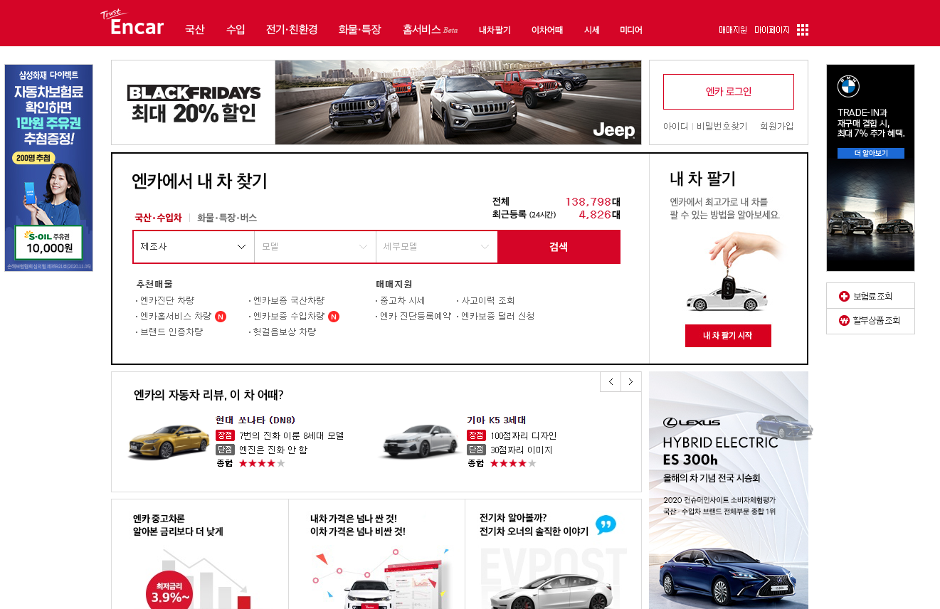 엔카는 중고차 매매사이트로 '중고나라'와 같이 비슷한 개념으로 보시면 됩니다. 이 곳에 있는 중고차들은 일반인들이 본인의 중고차매물을 판매하기 위해서 올리는 품목인데요. 딜러 뿐만 아니라 일반인들 또한 매물올리는 것이 가능한 부분으로 구매자와 판매자 모두 가장 많이 찾는 중고차 매매사이트라고 보시면 됩니다.