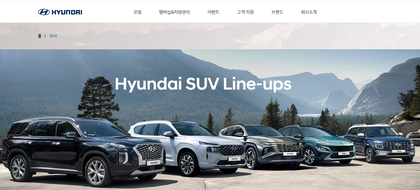 홈페이지에 접속하시면 이렇게 메인화면에 들어오게 됩니다. 여기서 모델을 누르시면 각종 차량의 가격을 보기 쉽게 확인할 수 있습니다.