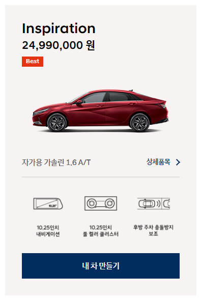가장 좋은 평가를 받고 있는 모델은 인스퍼레이션이지만, 아반떼 자체가 가성비를 중점으로 둔 준중형이기에 아무래도 비교적 가격이 낮은 모던 등급을 구매하는 것이 낫지 않냐? 라는 의견도 적지 않습니다. 물론 자신의 경제적 상황에 맞춰서 구매해야겠지만요. 만약 4~5천 넘어가는 차량을 구매할 재력이 된다면 굳이 아반떼를 구할 필요가 없겠지요. 다 각자의 주머니사정이 다르니깐요..