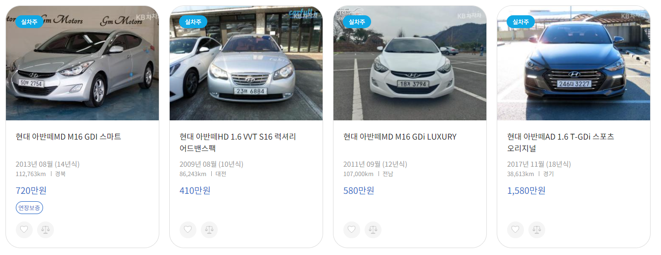 KB차차차에서 아반떼 매물 기준으로 본 가격대입니다. 아반떼 중고차 가격대 참고만 해주세요.
