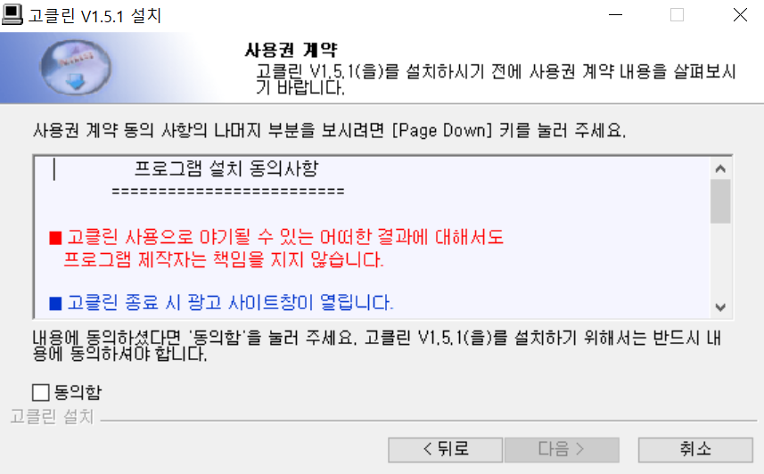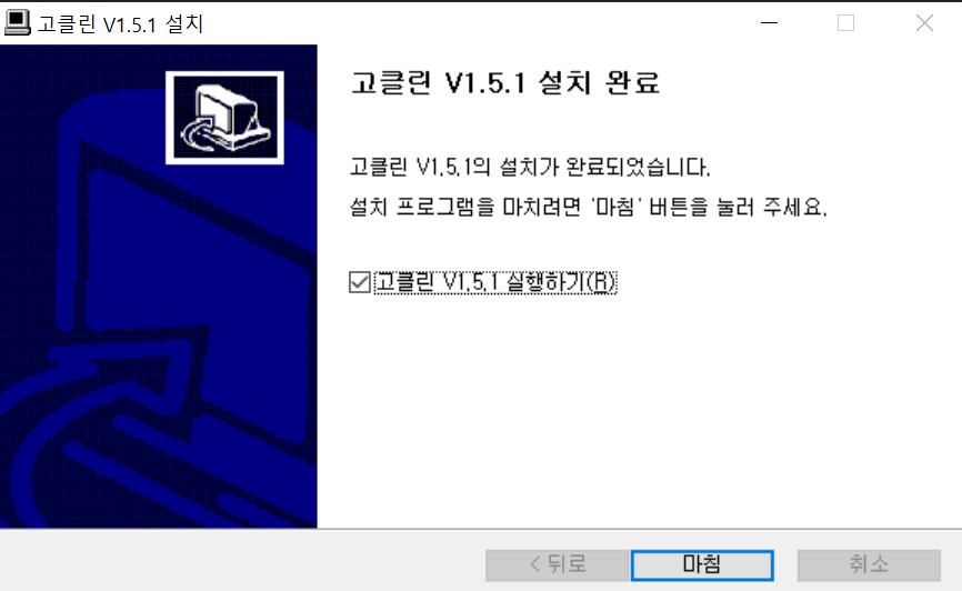 고클린 1.5.1 버전이 다운로드 완료되었습니다! 마침을 누르시면 자동으로 실행이됩니다.
