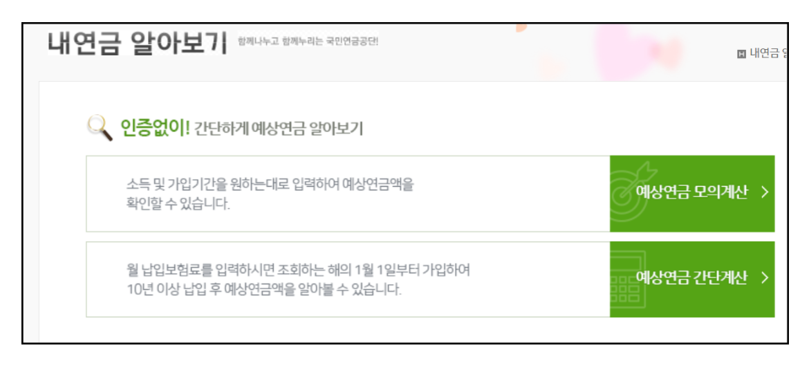 인증없이 간단하게 예상연금을 알아보실 수 있습니다.