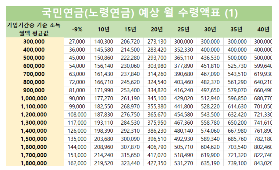 국민연금 예상수령액 표