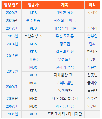 출연 드라마목록을 보시면~
