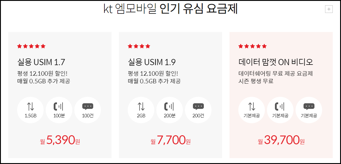 KT M모바일 알뜰폰 요금제